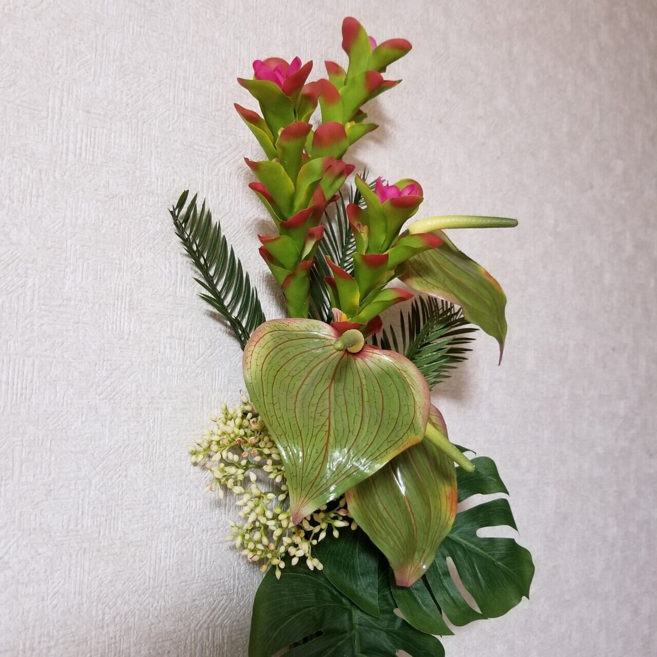 南国の花々、アンスリウムやジンジャー・・・トロピカルな色合いが、リゾート感溢れる