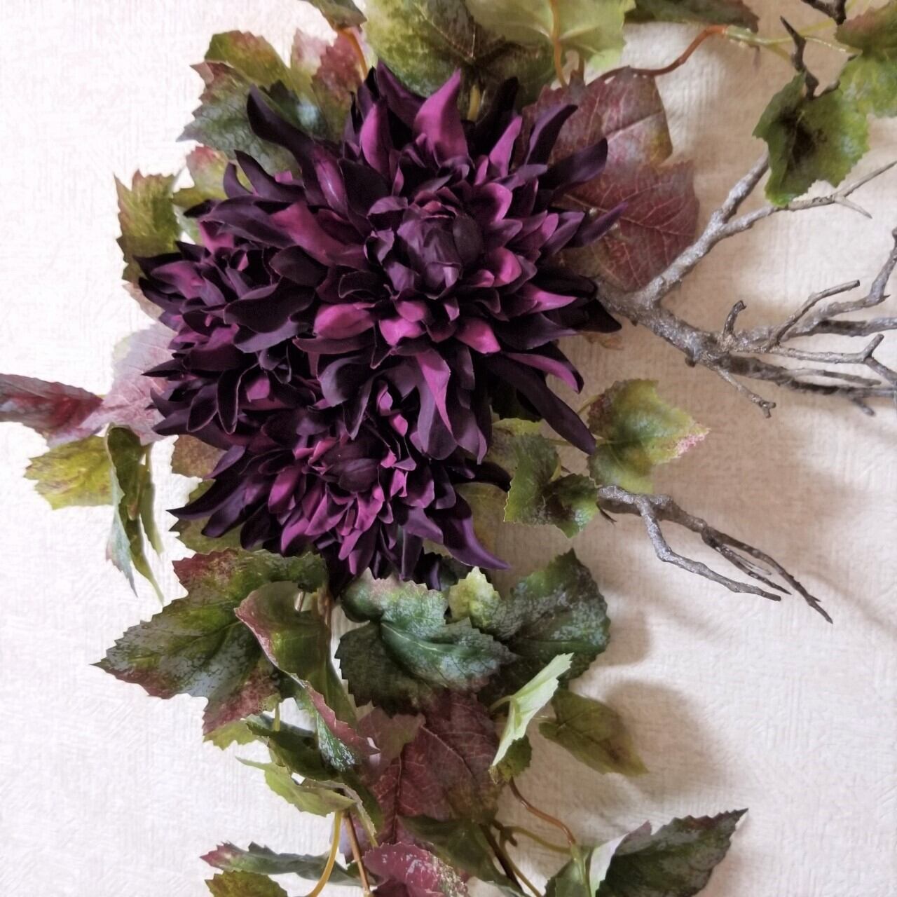 グレープリーフ&ダリア壁掛け【造花】-Grape Leaves&Dahlia Wall Hangings-